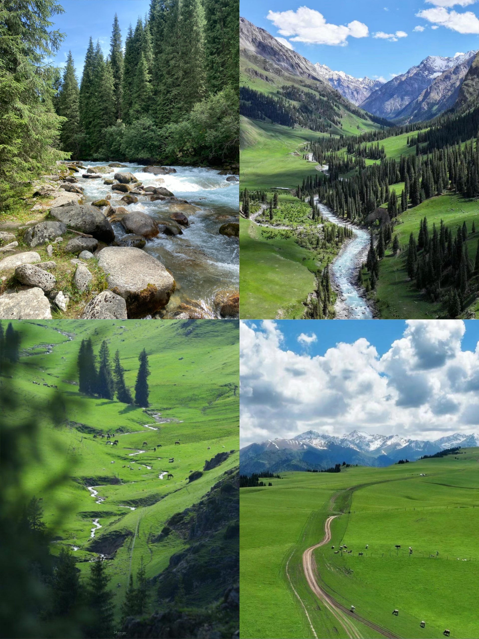 琼库什台村深度体验:6-9 月的琼库什台村是 “世外桃源”,木屋错落有致,周围是翠绿的草原与茂密的云杉林。抵达后,先在村内漫步,参观 “哈萨克族传统木屋”,了解木屋搭建工艺;随后前往 “琼库什台后山”,徒步至 “观景平台”(约 1.5 小时,难度低),俯瞰整个村落与草原全景,远处雪山清晰可见,宛如 “瑞士风光”;您还可体验 “草原骑马”(含在高配服务内,1.5 小时),在牧民向导带领下,穿越草原与森林,感受游牧乐趣。