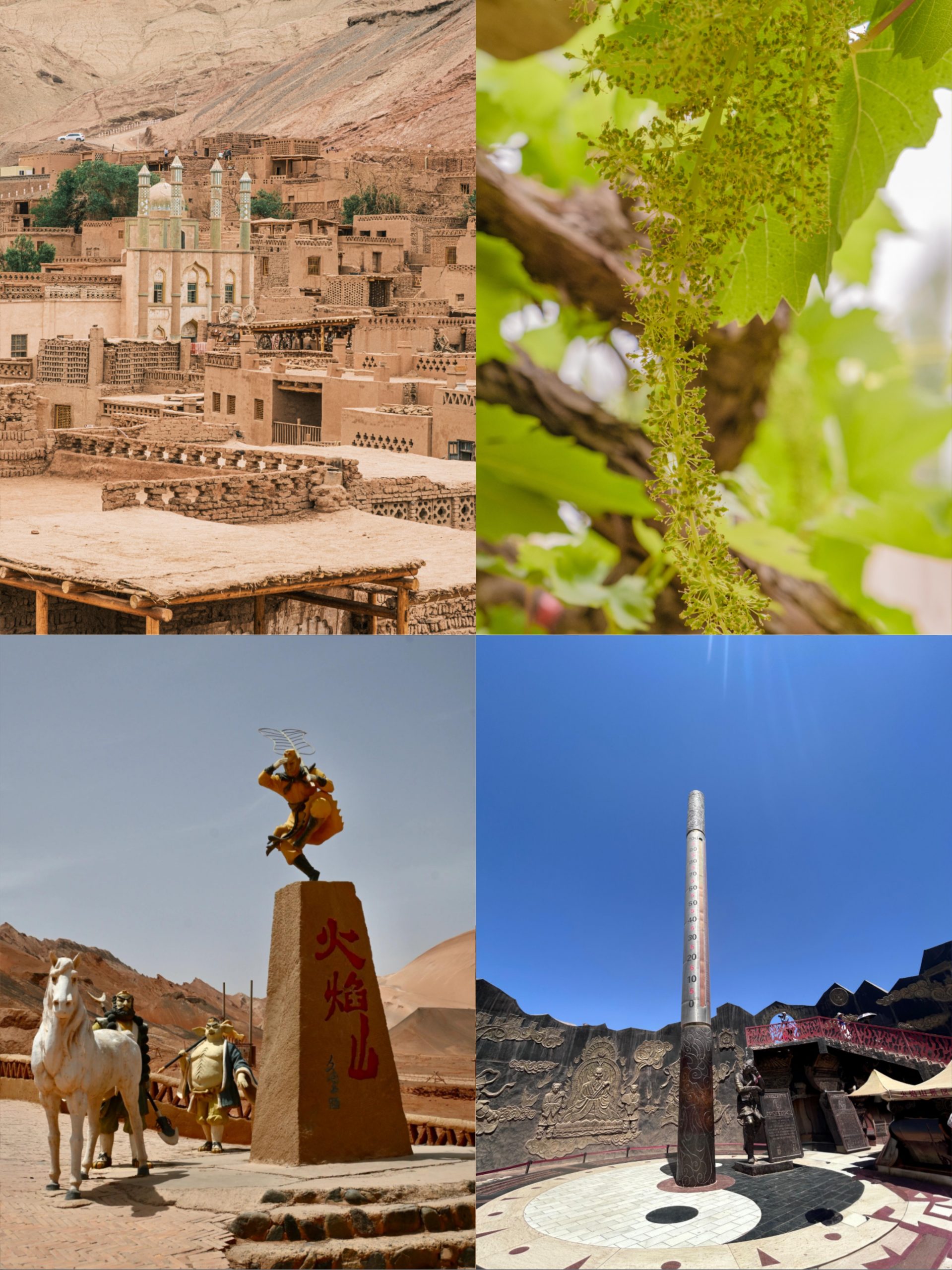 今日体验:走进 “葡萄的海洋” 葡萄沟,尝现摘甜葡萄;打卡《西游记》取景地火焰山,体验 “火洲” 热度;返程乌鲁木齐,夜逛大巴扎收尾行程